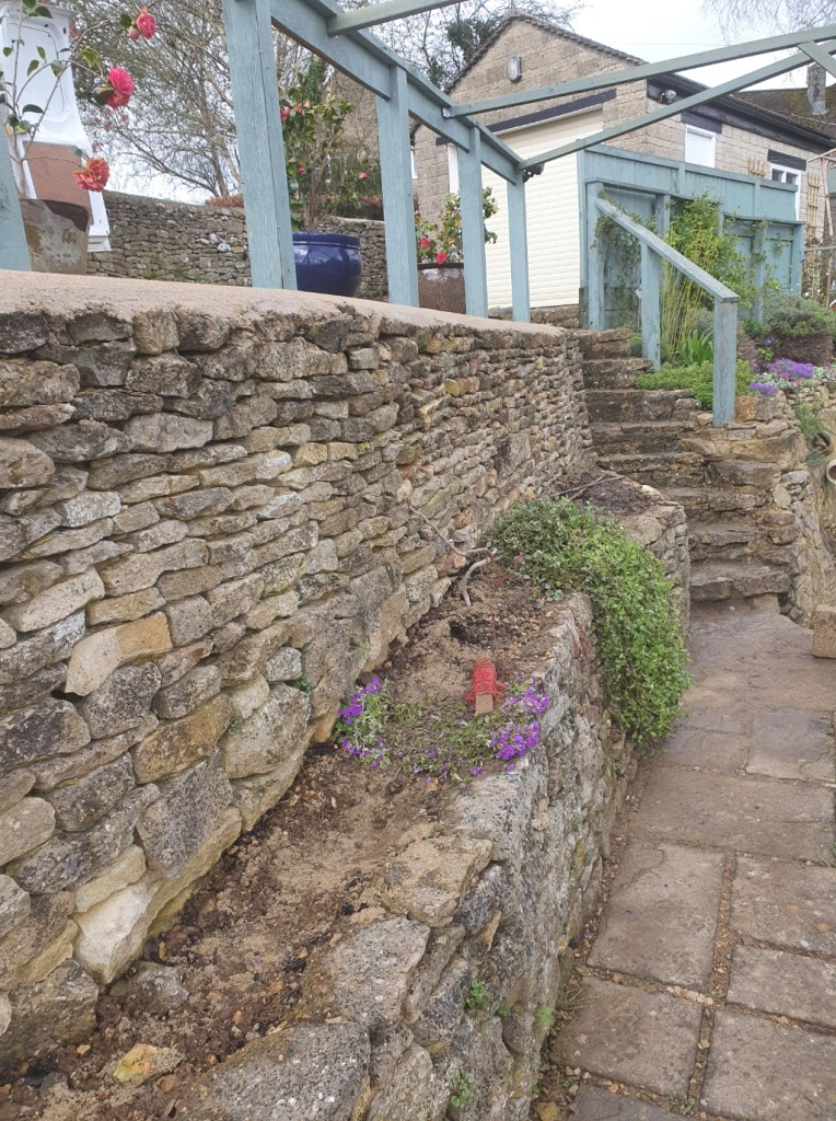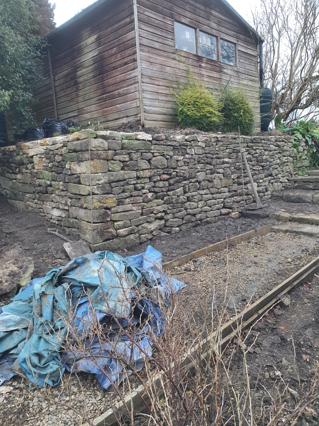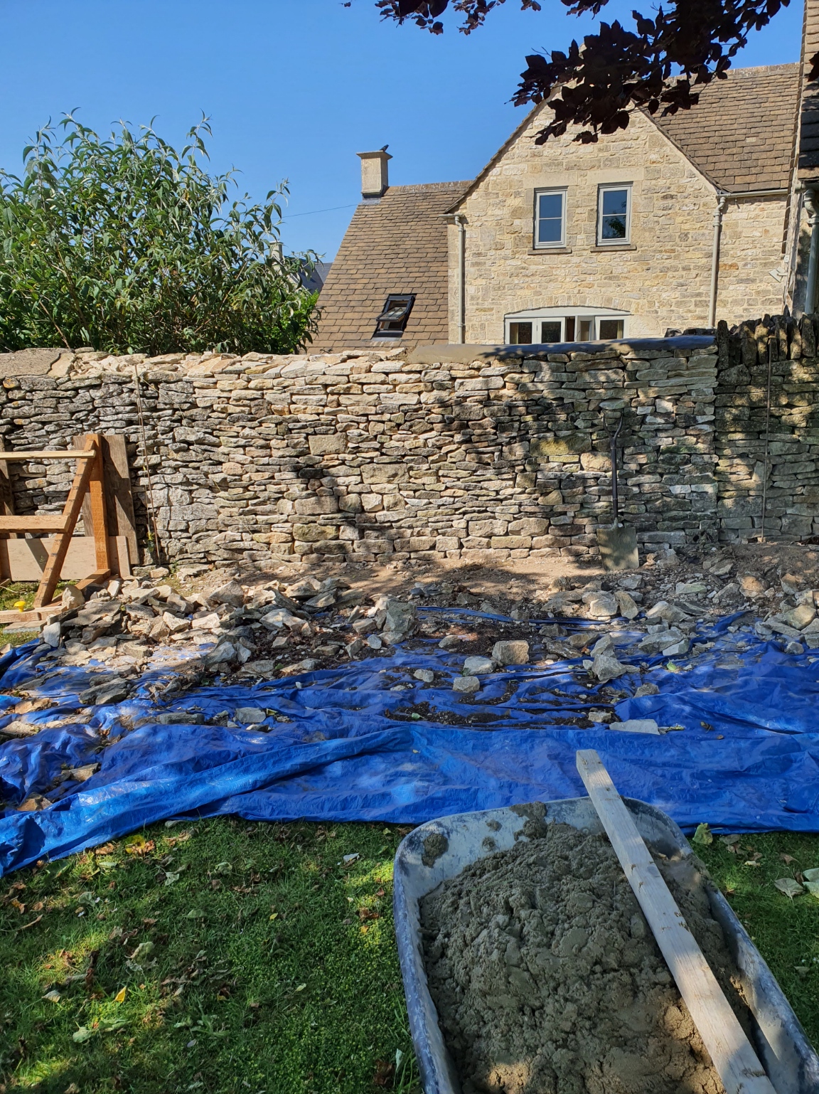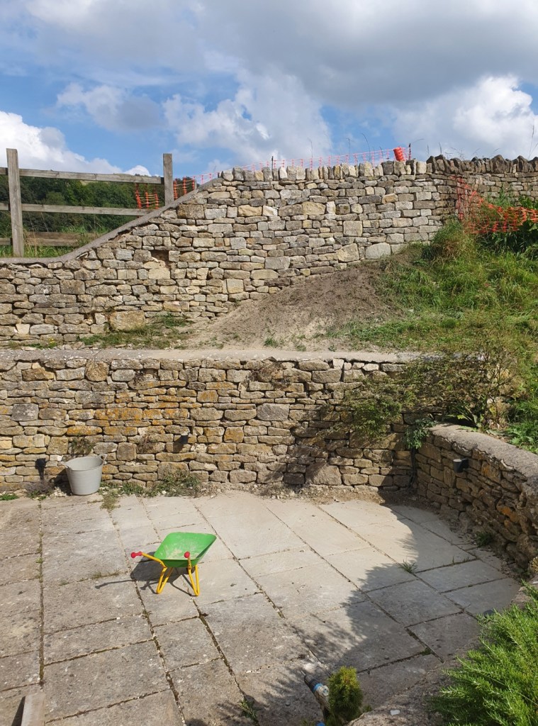 Excavating a collapsed existing wall, to replace with new retaining wall supported with buttress.